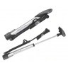 Насос оснащен специальной лапкой, которая откидывается для упора ноги. Благодаря этому, он обеспечивает надежную фиксацию во время работы. Также имеется встроенный шланг, который выдвигается для быстрого доступа к ниппелю на колесе. Данное преимущество позволяет значительно ускорить процесс накачки колес и обеспечить более высокий уровень давления по сравнению с мини-насосами.