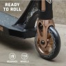 Самокат подходит для пользователей ростом от 110 до 170 см. Подшипники класса ABEC-9 и колеса диаметром 110 мм обеспечивают отличную скорость и маневренность. Ножные тормоза гарантируют контроль в любой ситуации.